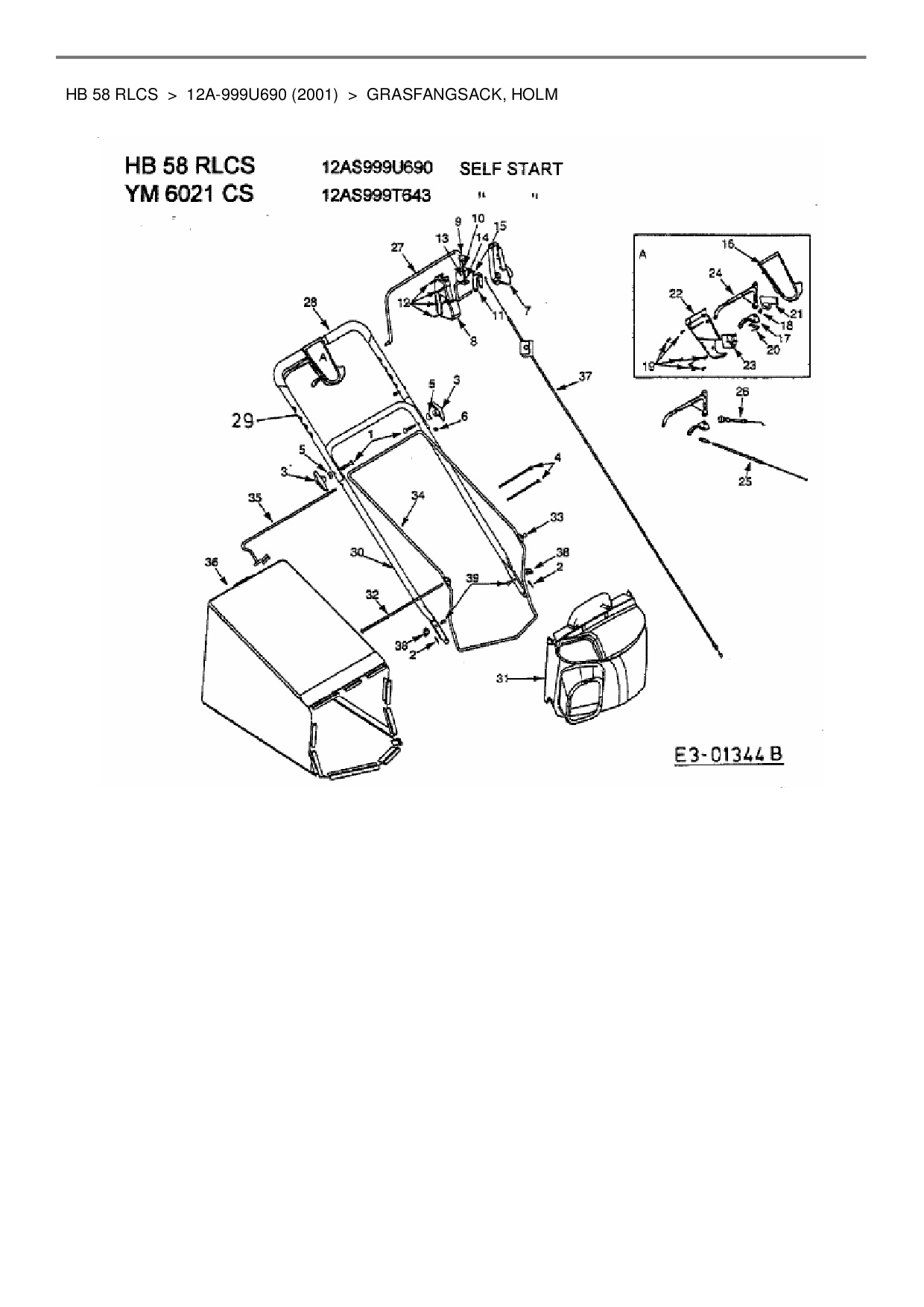 Ersatzteile für Motormäher mit Antrieb Gutbrod HB 58 RLCS aus der Zeichnung Grasfangsack, Holm: