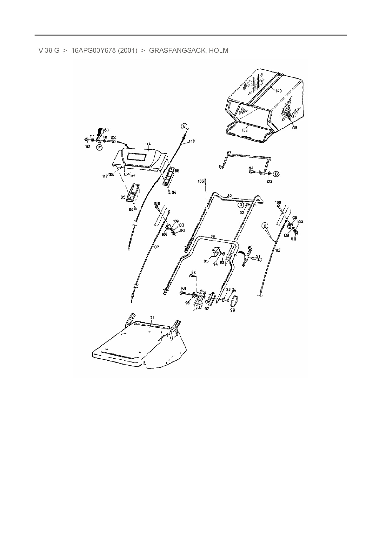 Ersatzteile für Motorvertikutierer MTD V 38 G aus der Zeichnung Grasfangsack, Holm: