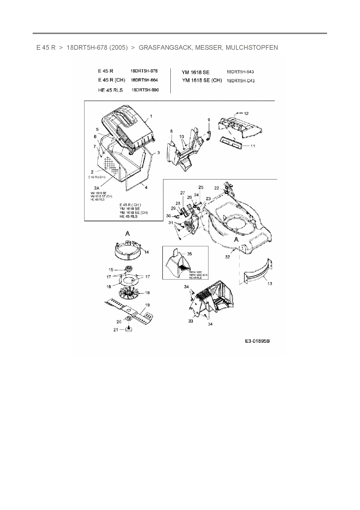 Ersatzteile für Elektromäher mit Antrieb MTD E 45 R aus der Zeichnung Grasfangsack, Messer, Mulchstopfen: