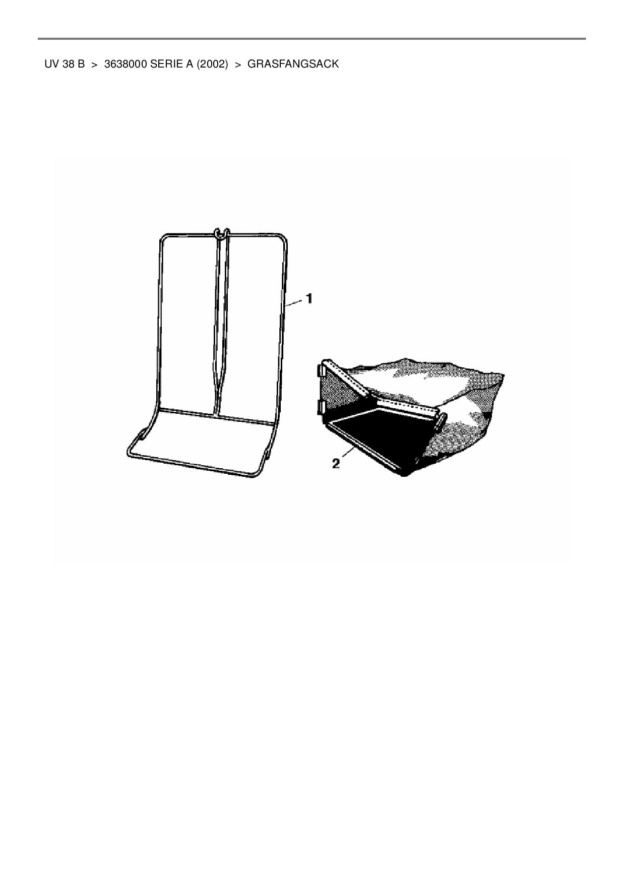 Ersatzteile für Motorvertikutierer Wolf-Garten UV 38 B aus der Zeichnung Grasfangsack: