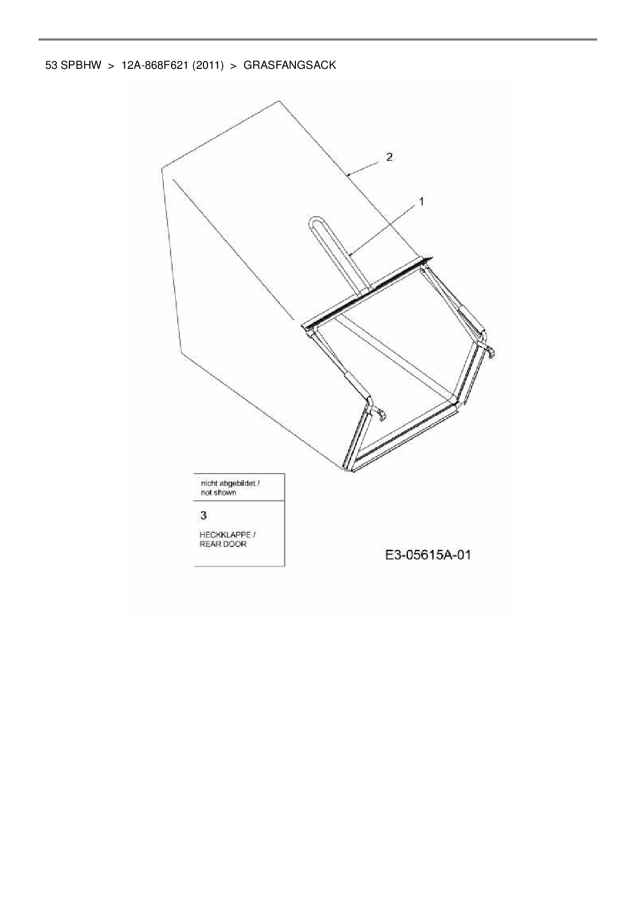 Ersatzteile für Motormäher mit Antrieb Hanseatic 53 SPBHW aus der Zeichnung Grasfangsack: