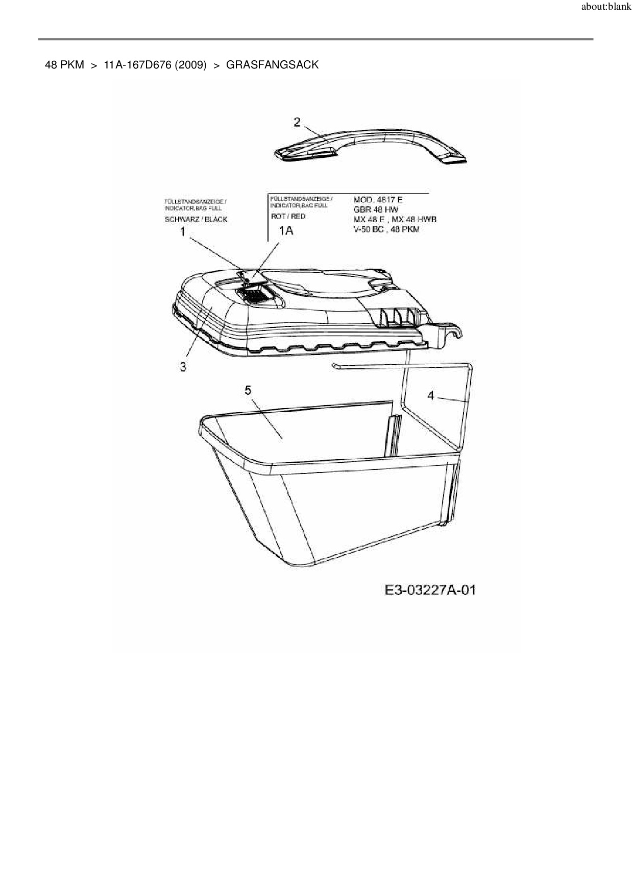 Ersatzteile für Motormäher MTD 48 PKM aus der Zeichnung Grasfangsack: