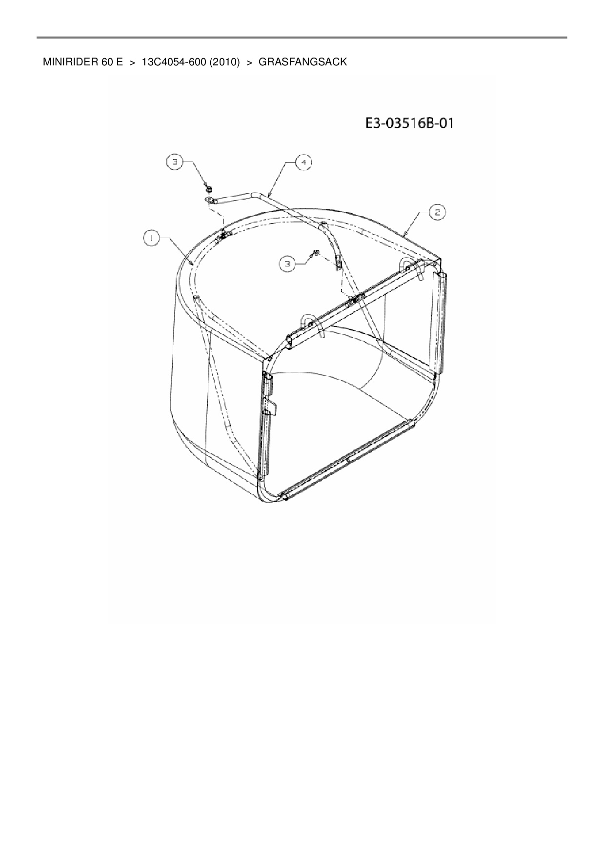 Ersatzteile für Rasentraktor MTD Minirider 60 E aus der Zeichnung Grasfangsack: