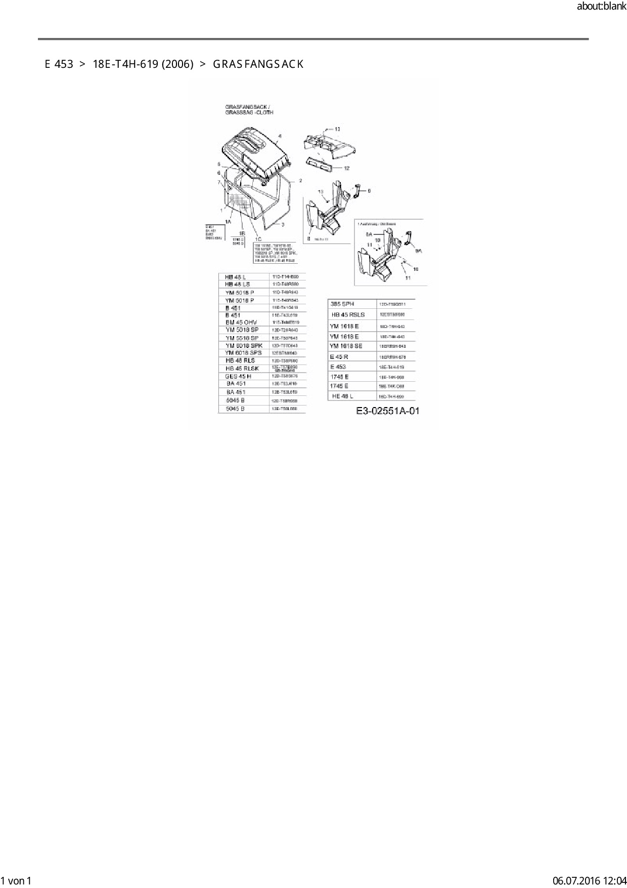 Ersatzteile für Elektromäher FLEURELLE E 453 aus der Zeichnung Grasfangsack: