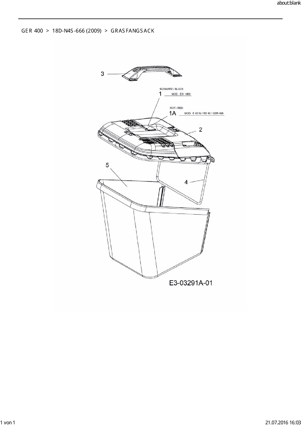 Ersatzteile für Elektromäher Garda GER 400 aus der Zeichnung Grasfangsack: