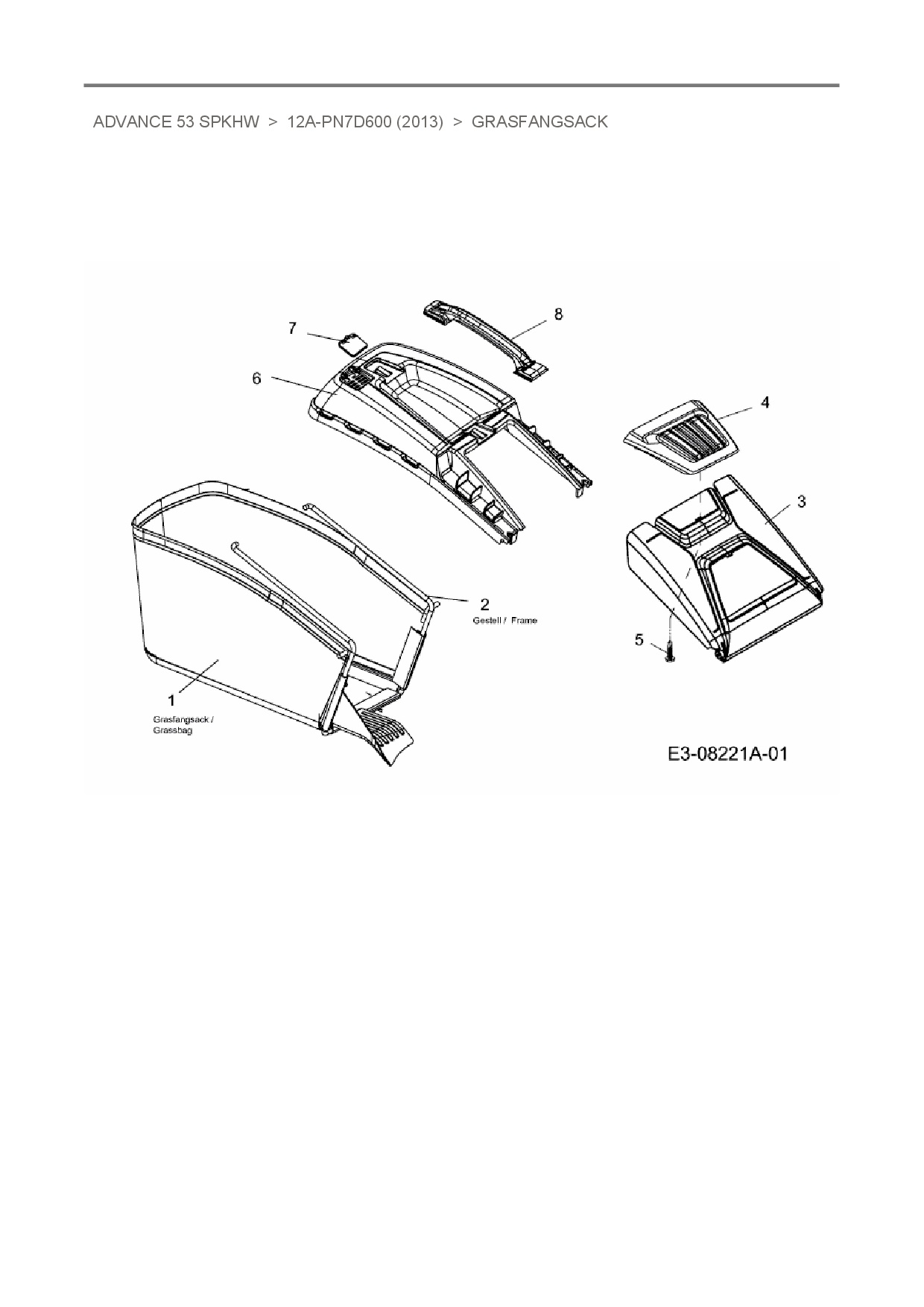 Ersatzteile für Motormäher mit Antrieb MTD Advance 53 SPKHW aus der Zeichnung Grasfangsack: