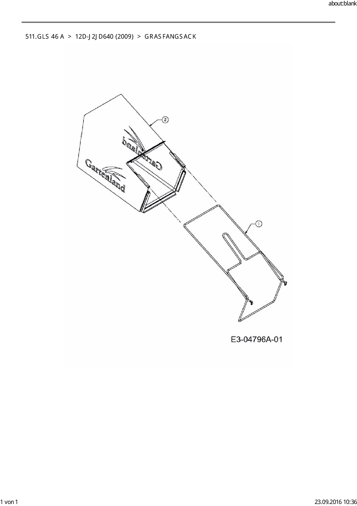 Ersatzteile für Motormäher mit Antrieb Gartenland 511.GLS 46 A aus der Zeichnung Grasfangsack: