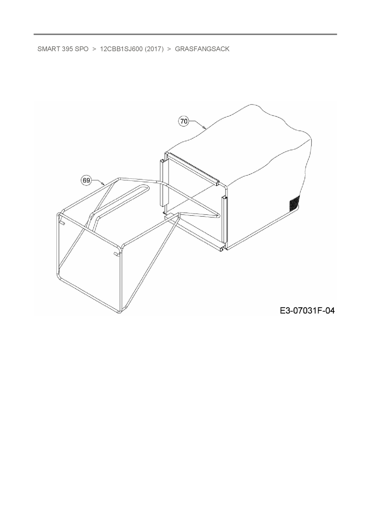 Ersatzteile für Motormäher mit Antrieb MTD Smart 395 SPO aus der Zeichnung Grasfangsack: