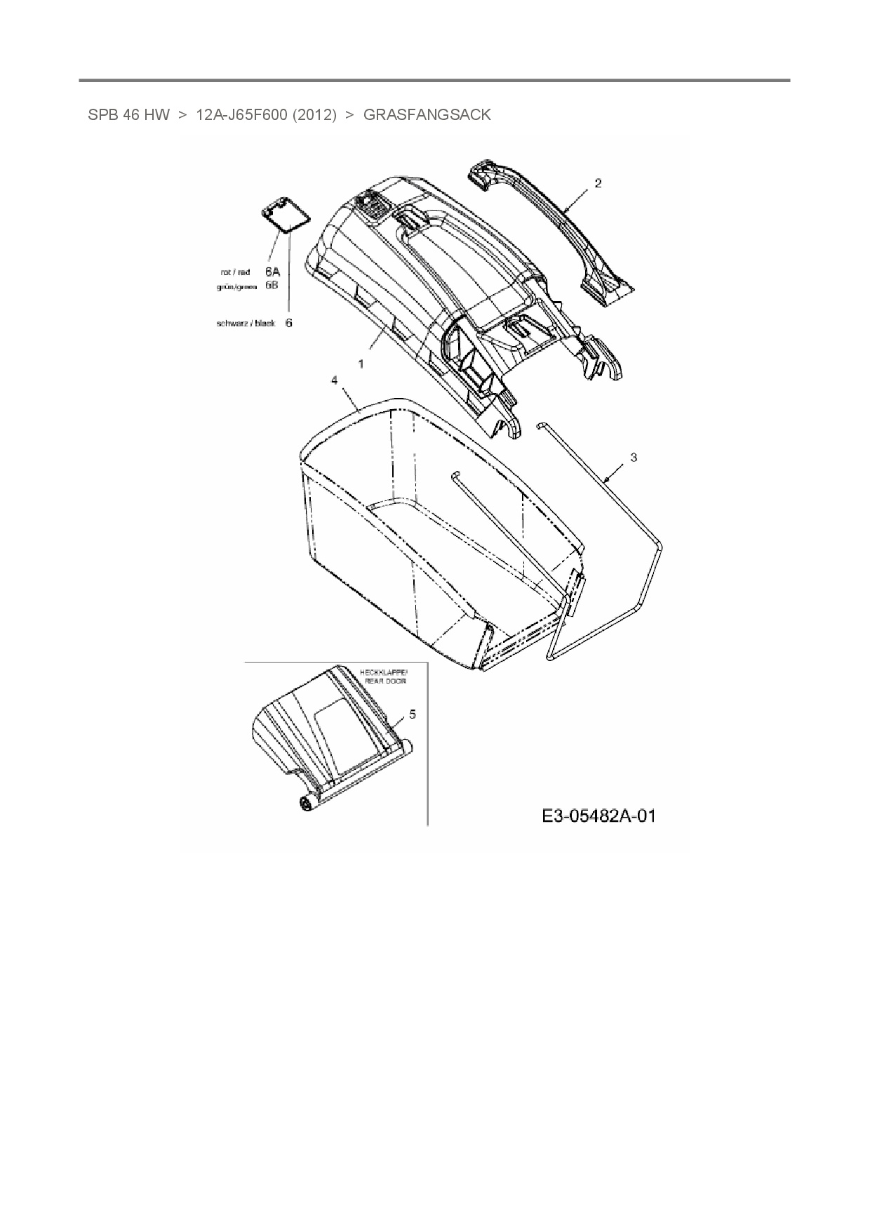 Ersatzteile für Motormäher mit Antrieb MTD SPB 46 HW aus der Zeichnung Grasfangsack: