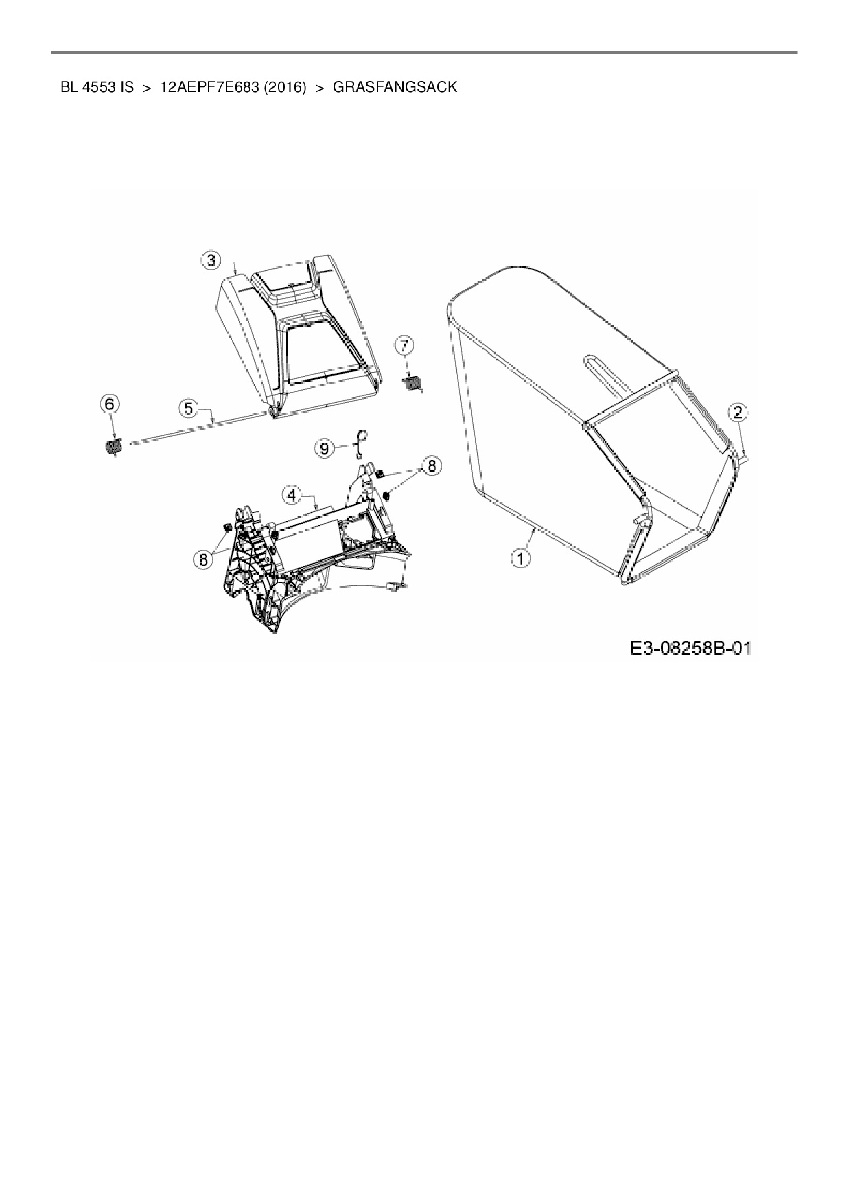 Ersatzteile für Motormäher mit Antrieb Black-Line BL 4553 IS aus der Zeichnung Grasfangsack: