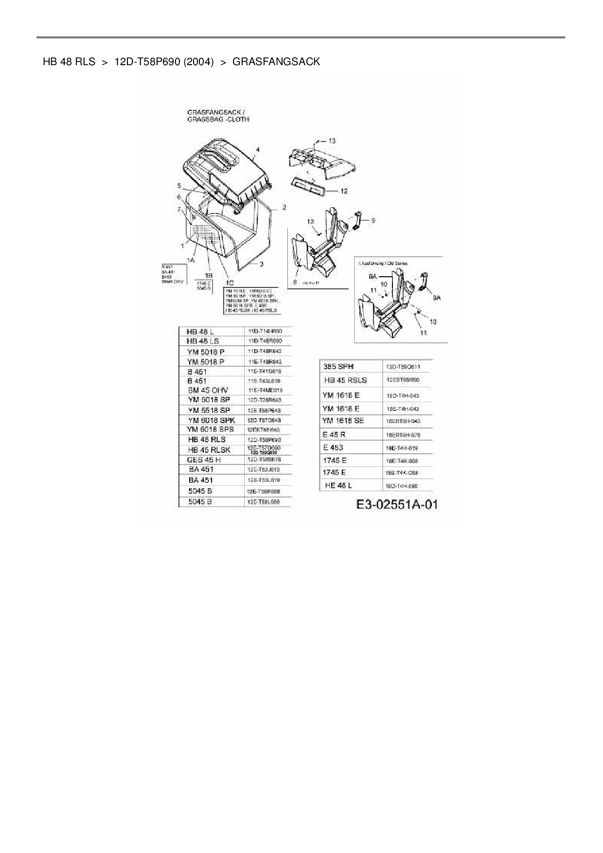 Ersatzteile für Motormäher mit Antrieb Gutbrod HB 48 RLS aus der Zeichnung Grasfangsack:
