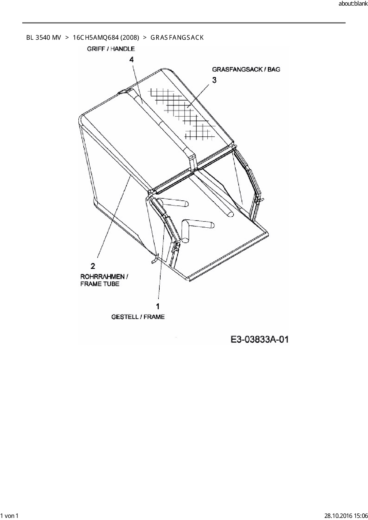 Ersatzteile für Motorvertikutierer Bolens BL 3540 MV aus der Zeichnung Grasfangsack: