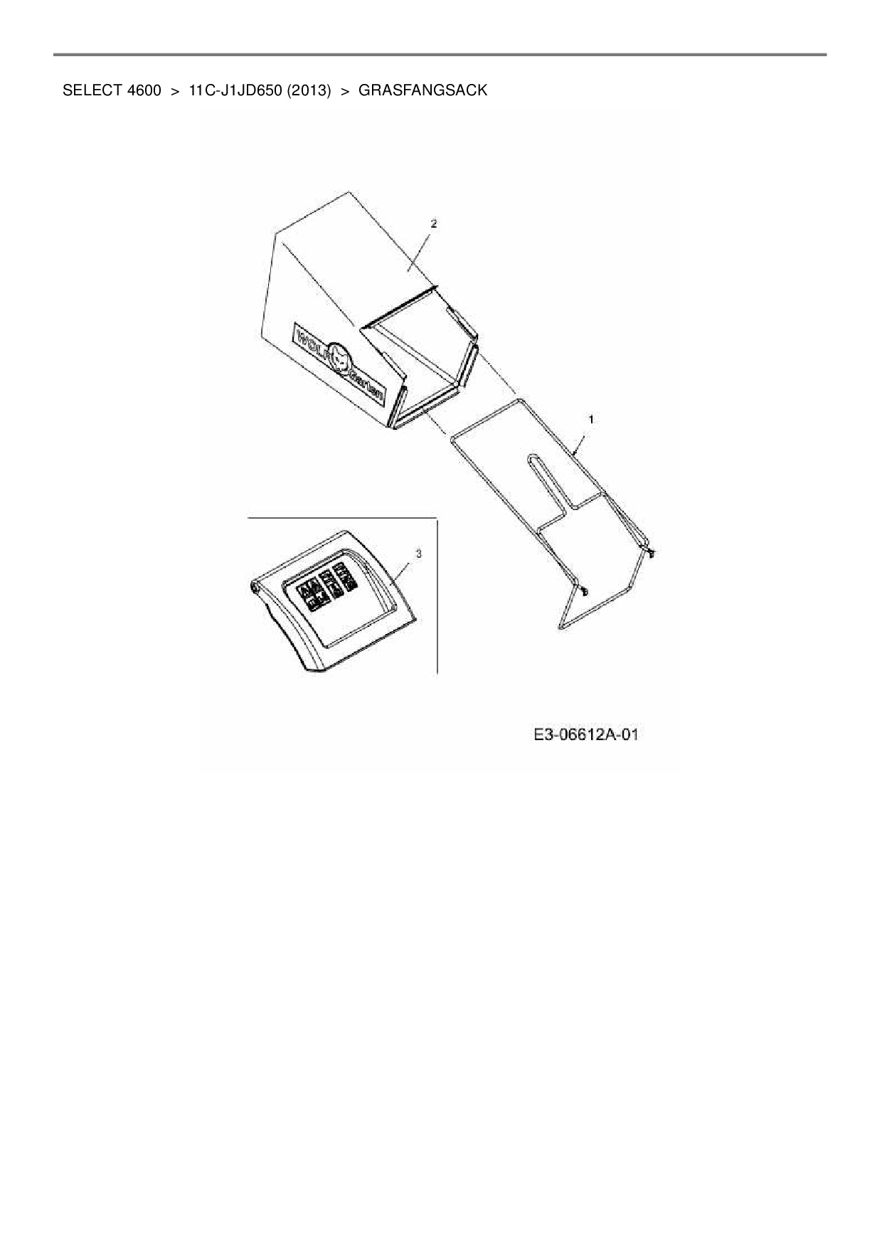 Ersatzteile für Motormäher Wolf-Garten Select 4600 aus der Zeichnung Grasfangsack: