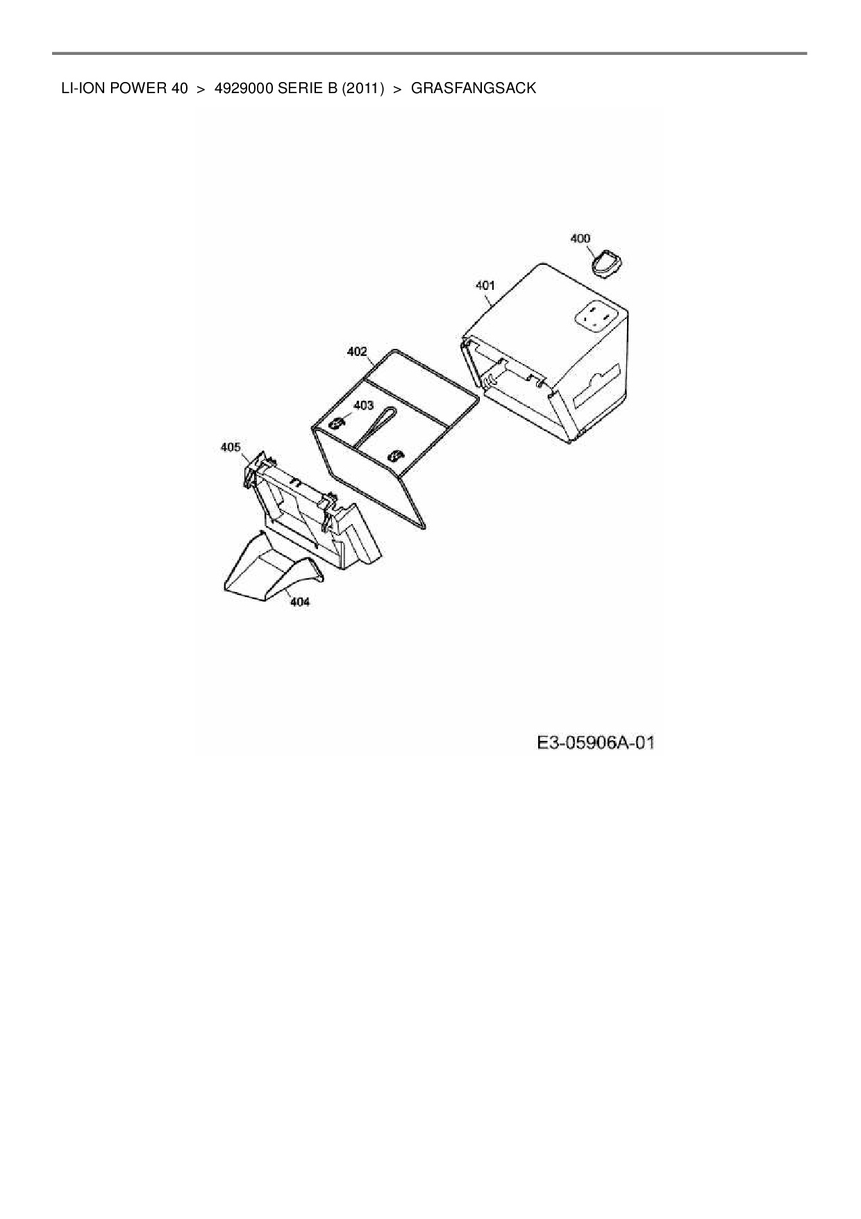 Ersatzteile für Akkumäher Wolf-Garten Li-Ion Power 40 aus der Zeichnung Grasfangsack: