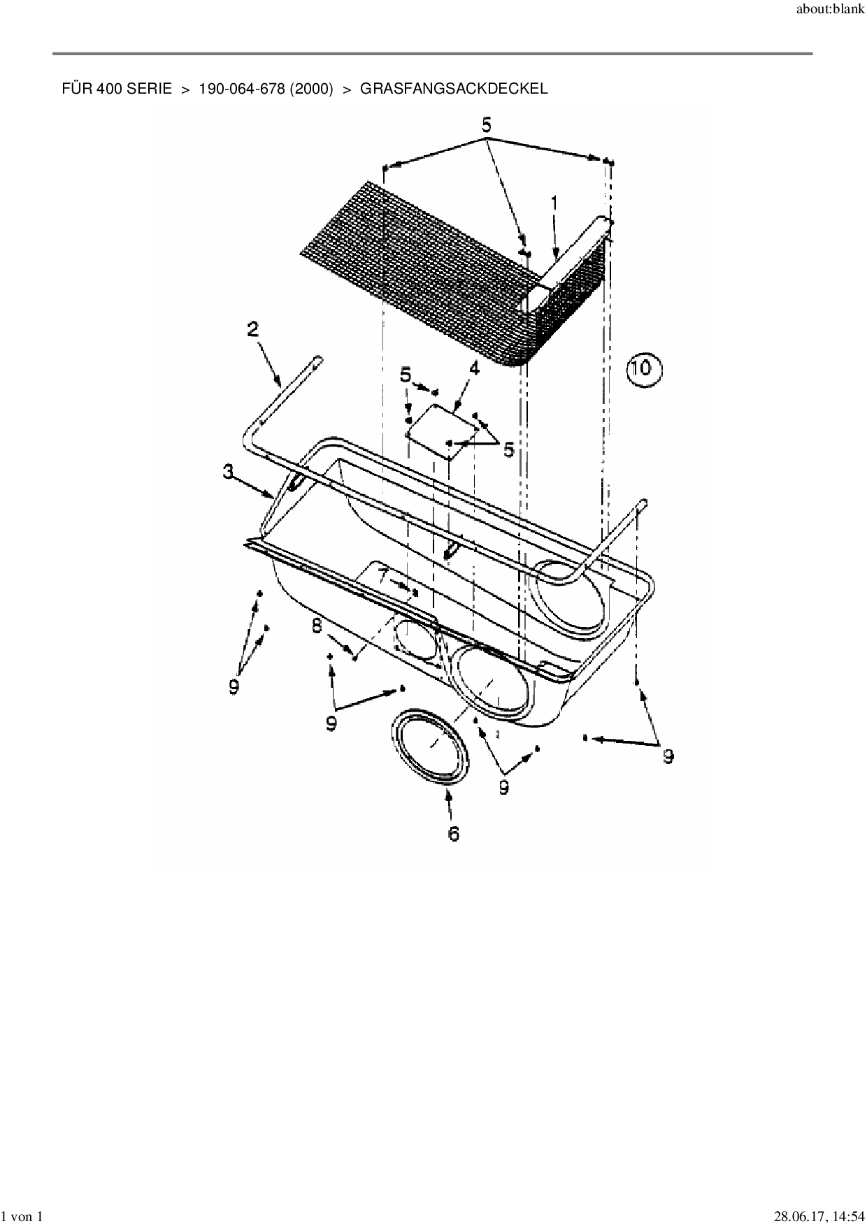 Download Ersatzteil-Zeichnung Zubehör Garten- und Rasentraktoren für 400 Serie Zeichnung Grasfangsackdeckel (PDF-Format)