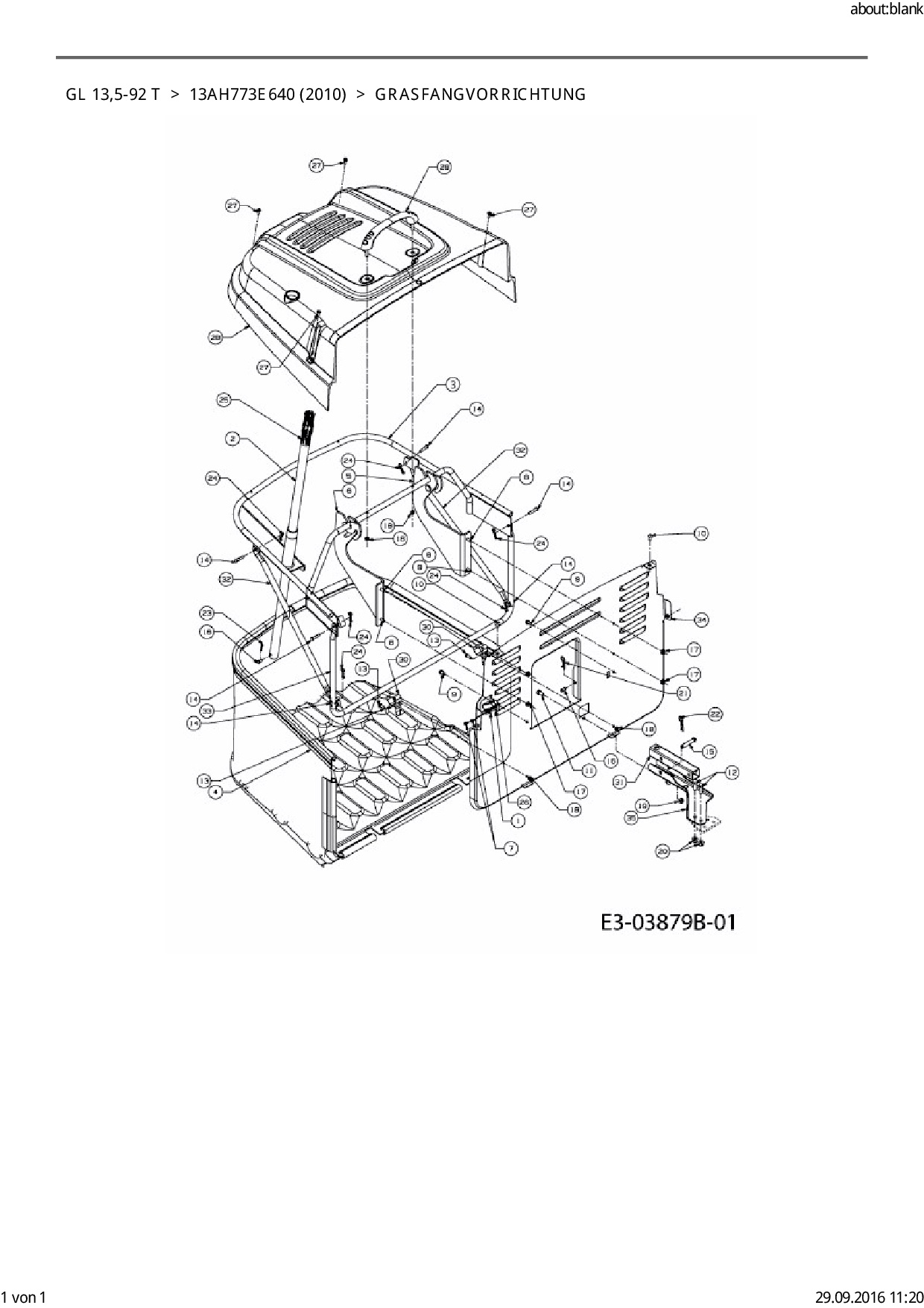Ersatzteile für Rasentraktor Gartenland GL 13,5-92 T aus der Zeichnung Grasfangvorrichtung:
