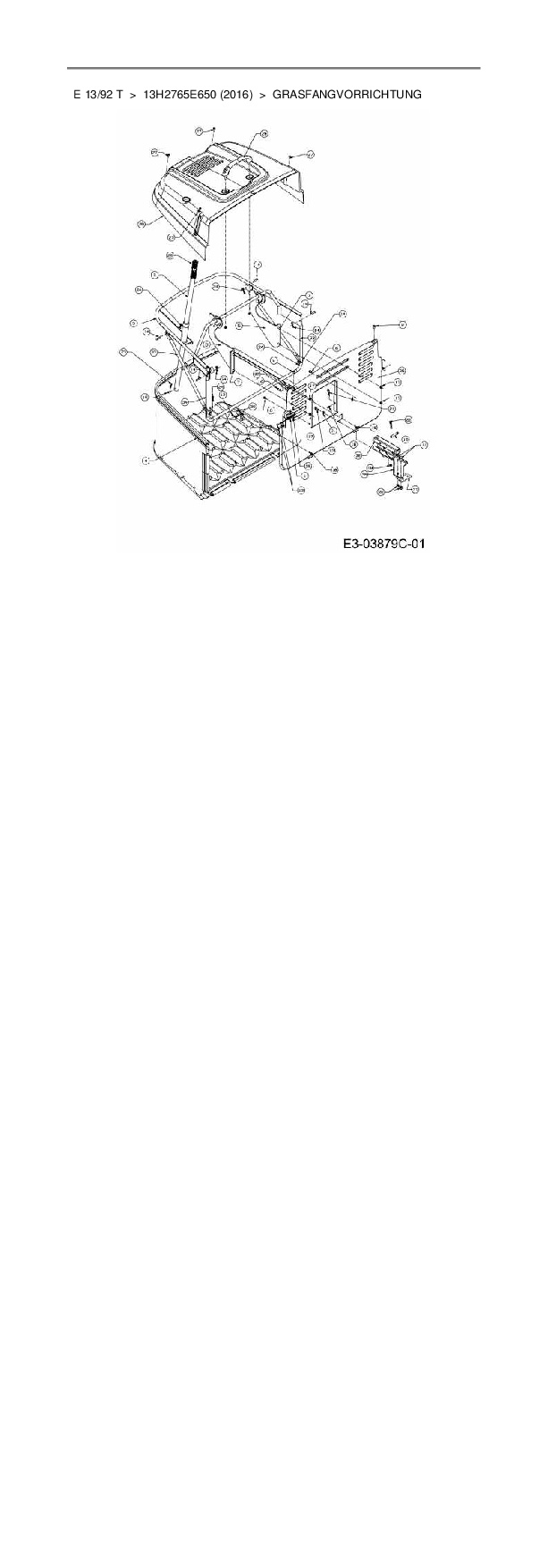 Ersatzteile für Rasentraktor Wolf-Garten E 13/92 T aus der Zeichnung Grasfangvorrichtung: