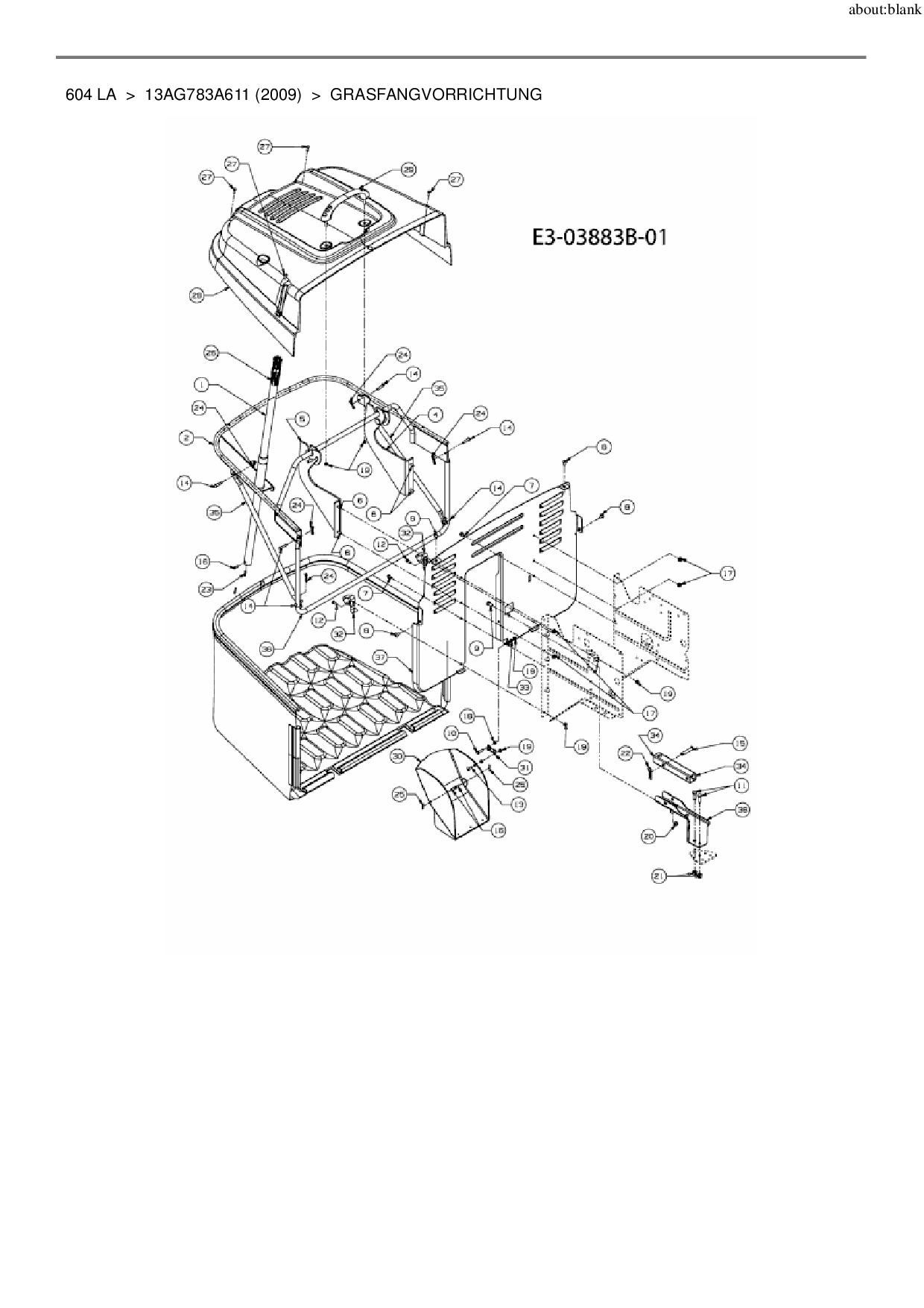 Ersatzteile für Rasentraktor Lawnflite 604 LA aus der Zeichnung Grasfangvorrichtung: