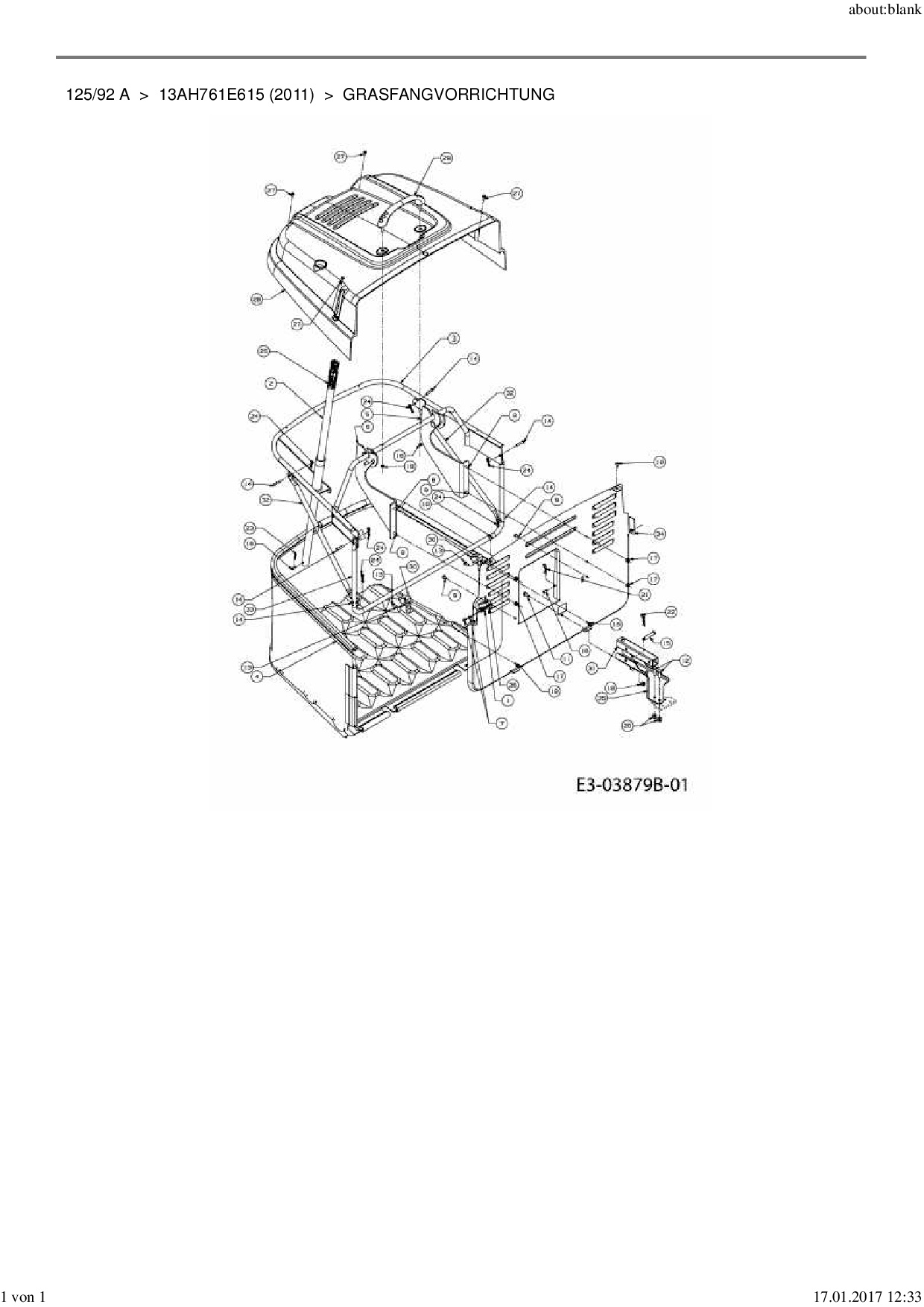 Ersatzteile für Rasentraktor MTD 125/92 A aus der Zeichnung Grasfangvorrichtung: