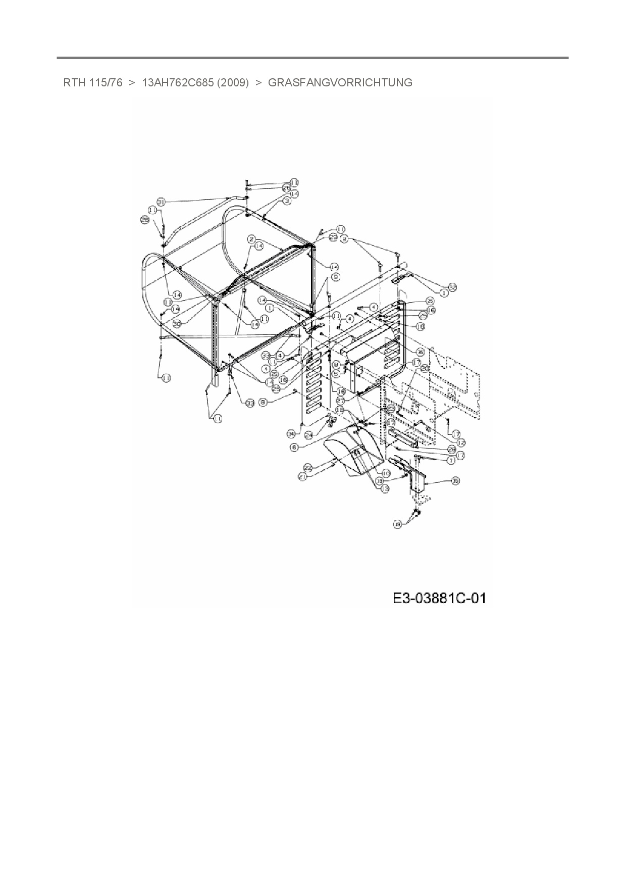 Ersatzteile für Rasentraktor Sunline RTH 115/76 aus der Zeichnung Grasfangvorrichtung:
