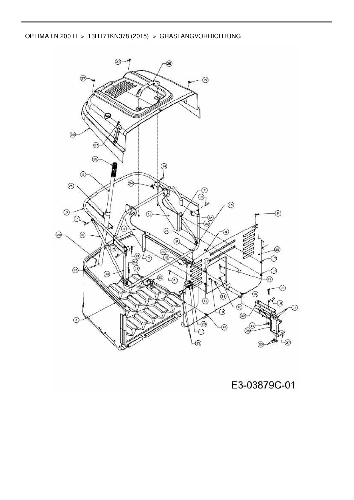 Ersatzteile für Rasentraktor MTD Optima LN 200 H aus der Zeichnung Grasfangvorrichtung:
