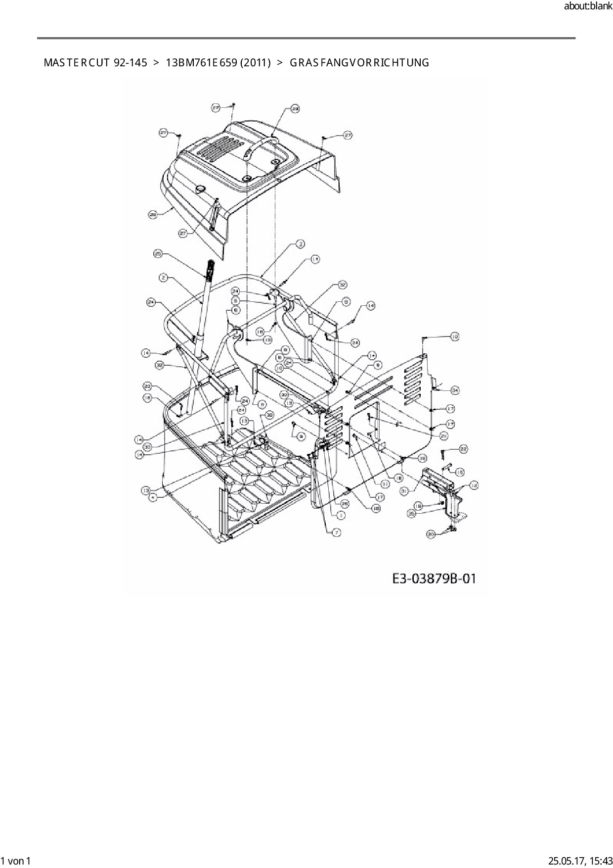 Ersatzteile für Rasentraktor Mastercut Mastercut 92-145 aus der Zeichnung Grasfangvorrichtung: