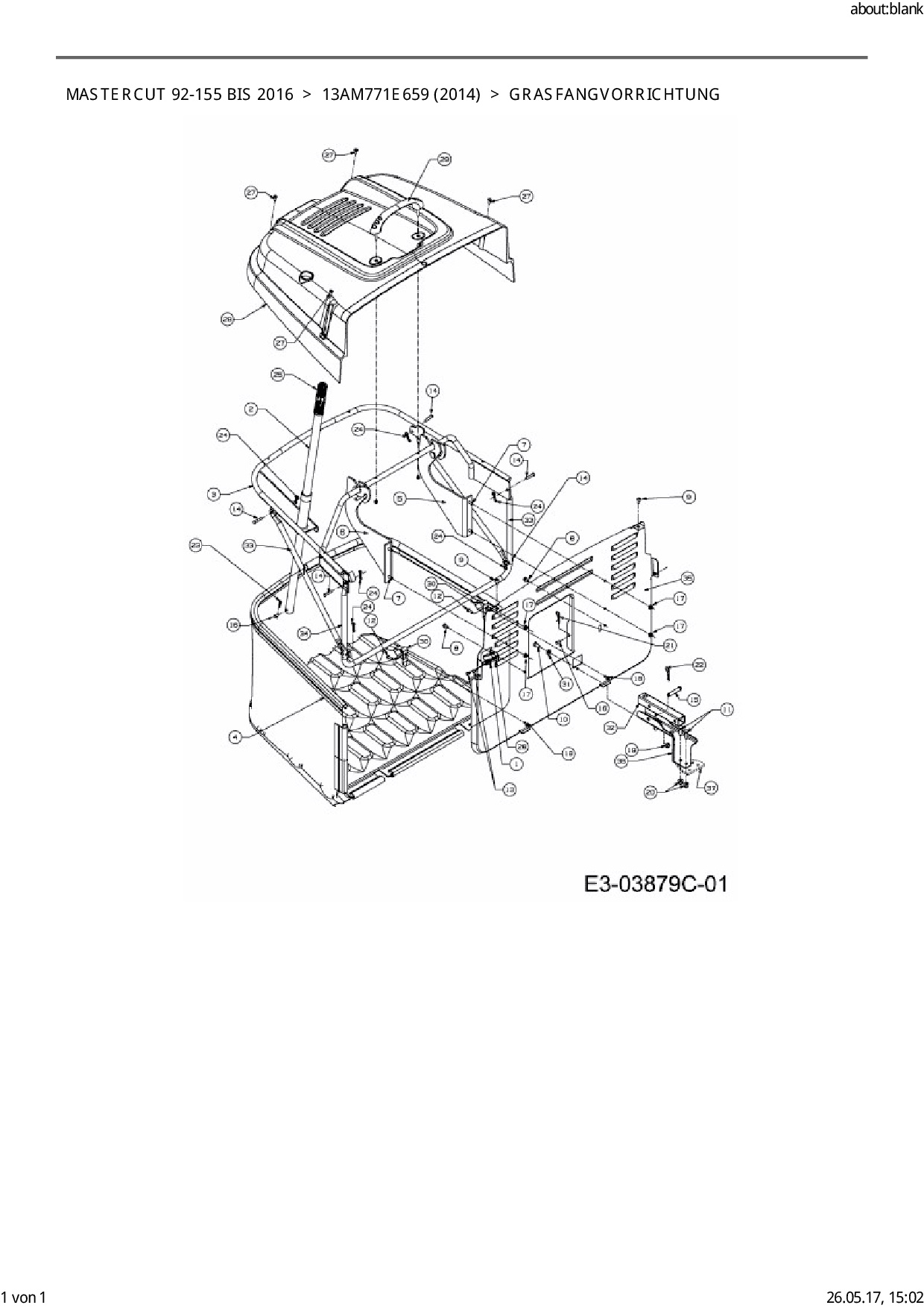 Download Ersatzteil-Zeichnung Mastercut Mastercut 92-155 bis 2016 Zeichnung Grasfangvorrichtung (PDF-Format)
