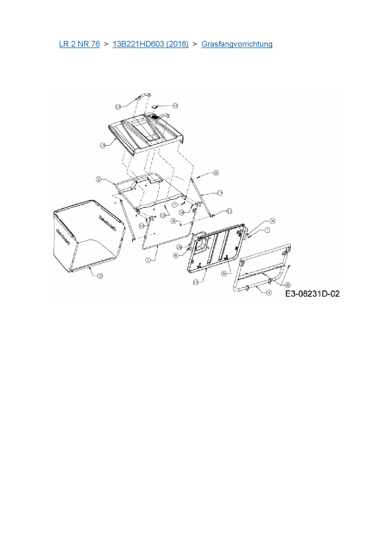 Ersatzteile für Rasentraktor Cub Cadet LR 2 NR 76 aus der Zeichnung Grasfangvorrichtung: