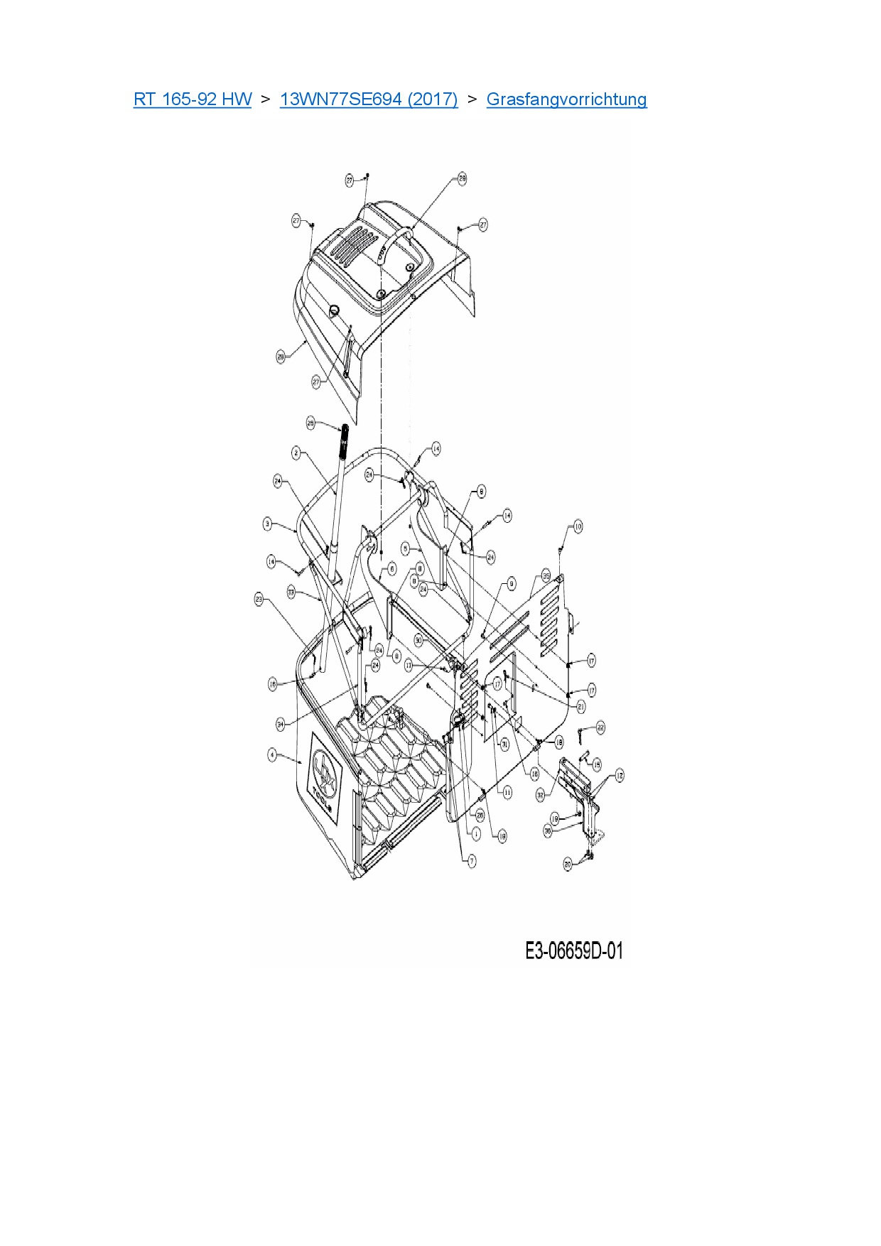 Ersatzteile für Rasentraktor Lux Tools RT 165-92 HW aus der Zeichnung Grasfangvorrichtung: