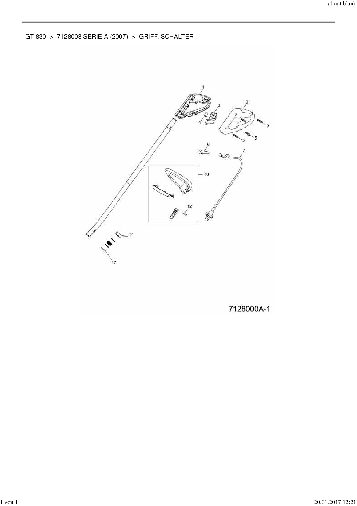 Download Ersatzteil-Zeichnung Wolf-Garten GT 830 Zeichnung Griff, Schalter (PDF-Format)
