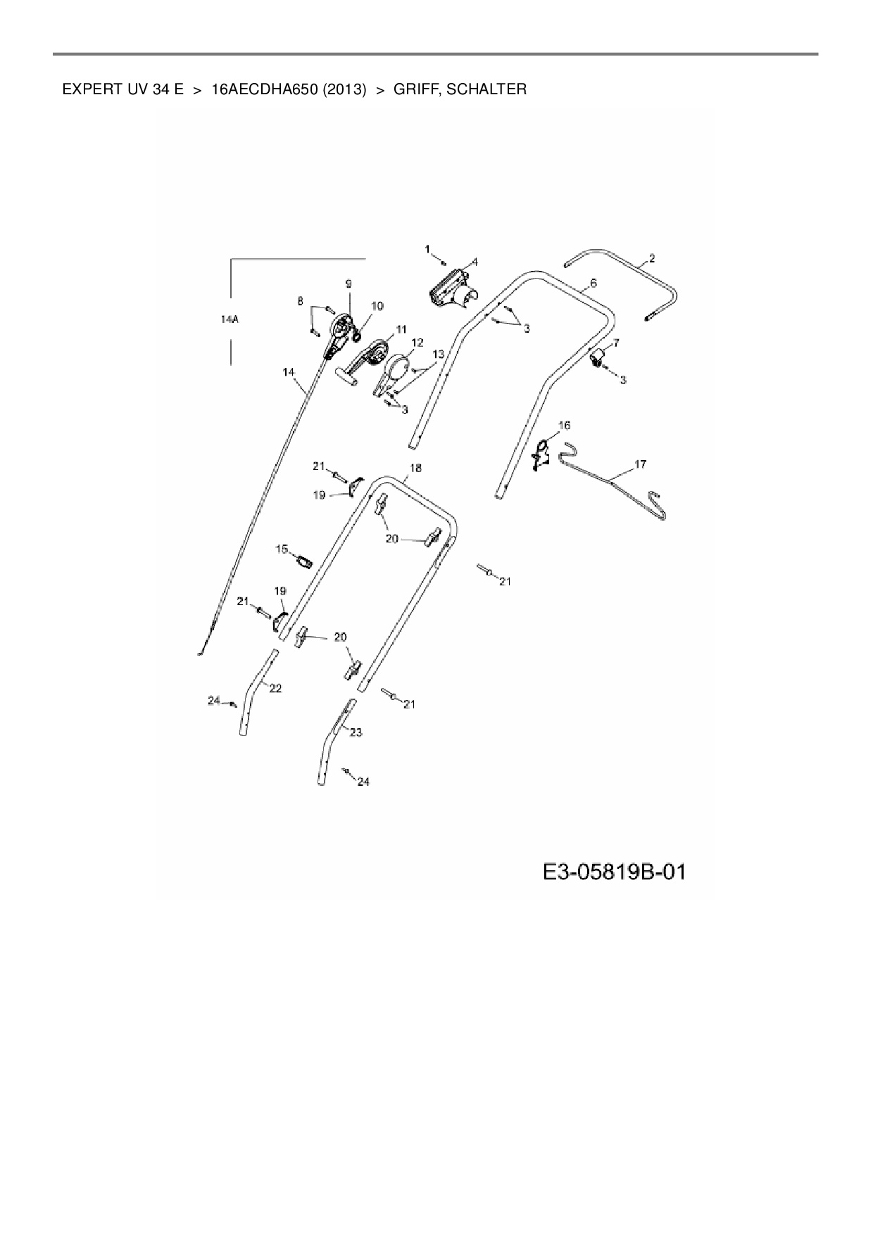Ersatzteile für Elektrovertikutierer Wolf-Garten Expert Expert UV 34 E aus der Zeichnung Griff, Schalter: