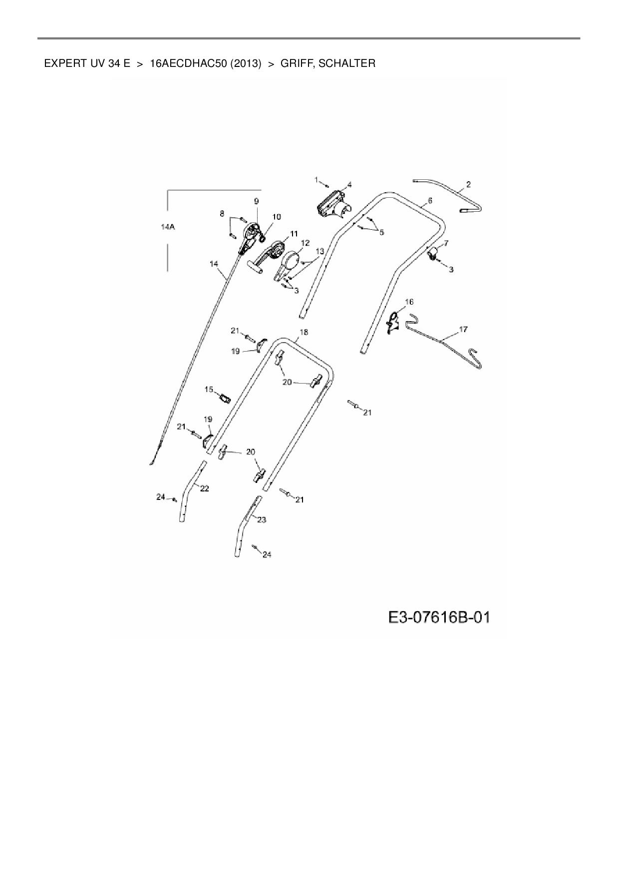 Download Ersatzteil-Zeichnung Wolf-Garten Expert Expert UV 34 E Zeichnung Griff, Schalter (PDF-Format)