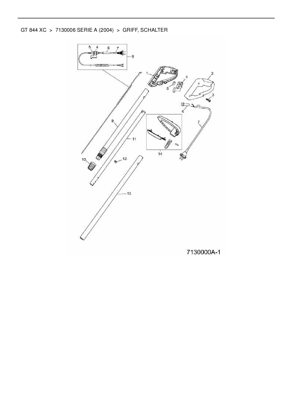 Zeichnung für Wolf-Garten Elektrotrimmer GT 844 XC mit der Geräte-Artikelnr. 7130006 Serie A ab Baujahr 2004: