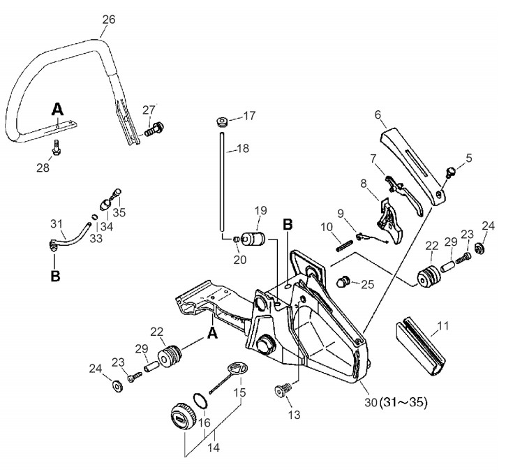 Zeichnung von ECHO Motorsägen CS-4200ES Griffe ab S.-Nr.: 36033994: