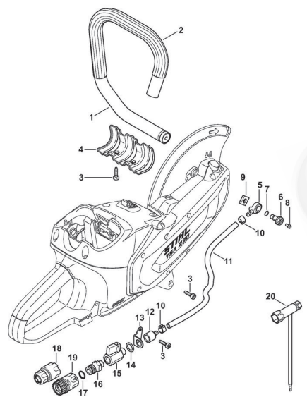Hier finden Sie alle Ersatzteile von Stihl Akku-Geräte TSA 230 der Zeichnungsgruppe Griffrohr, Wasseranschluss: