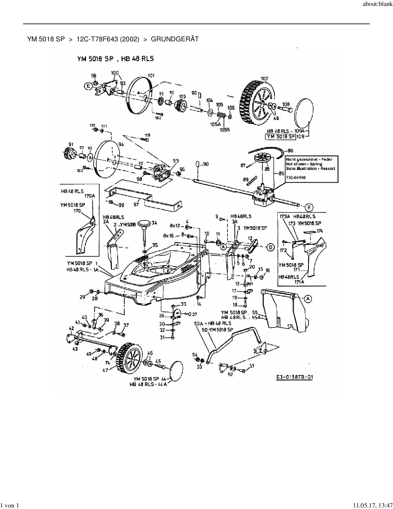 Ersatzteile für Motormäher mit Antrieb Yard-Man YM 5018 SP aus der Zeichnung Grundgerät 1: