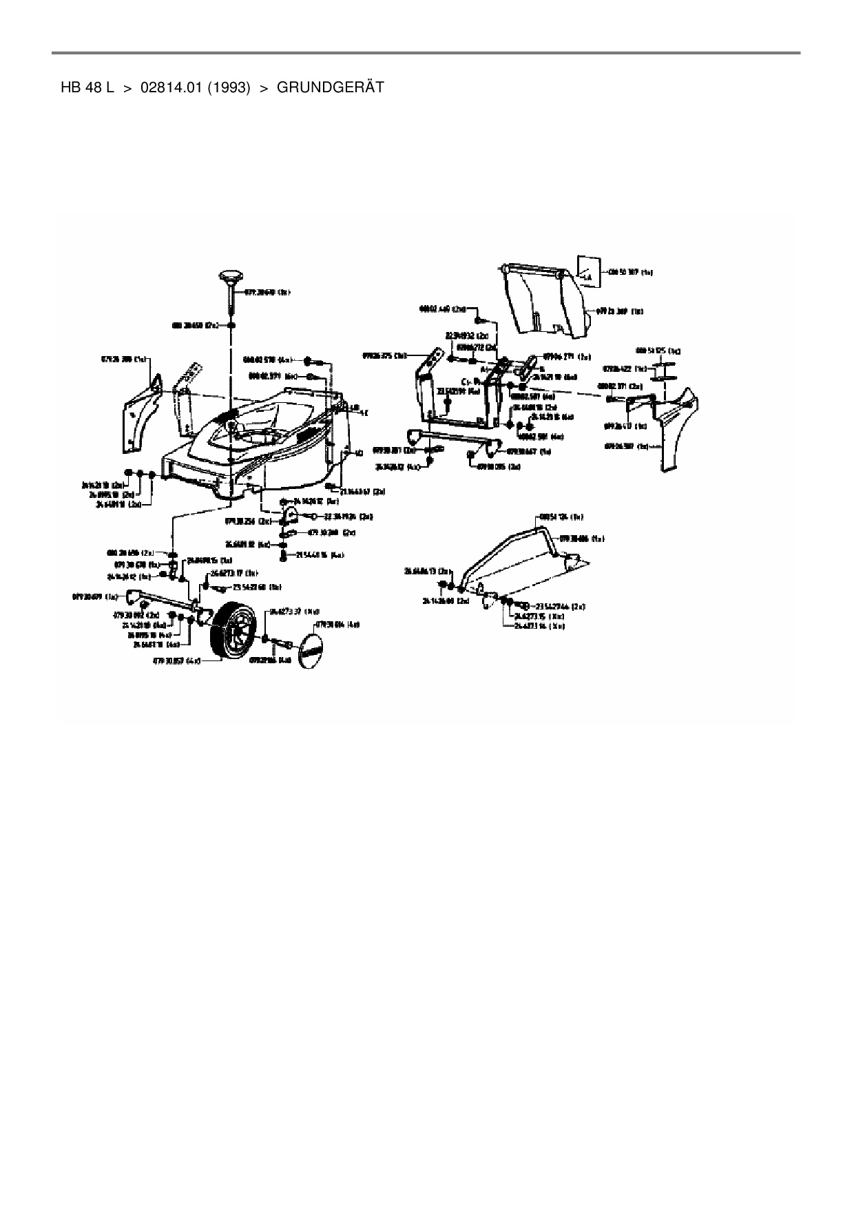 Zeichnung für Gutbrod Motormäher HB 48 L mit der Geräte-Artikelnr. 2814.01 ab Baujahr 1993: