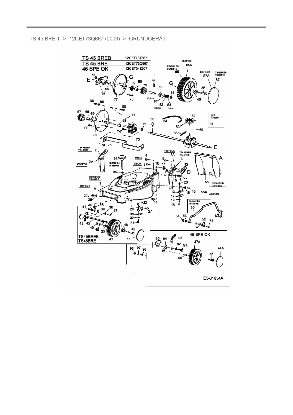 Ersatzteile für Motormäher mit Antrieb Turbo-Silent TS 45 BRE-T aus der Zeichnung Grundgerät (2):