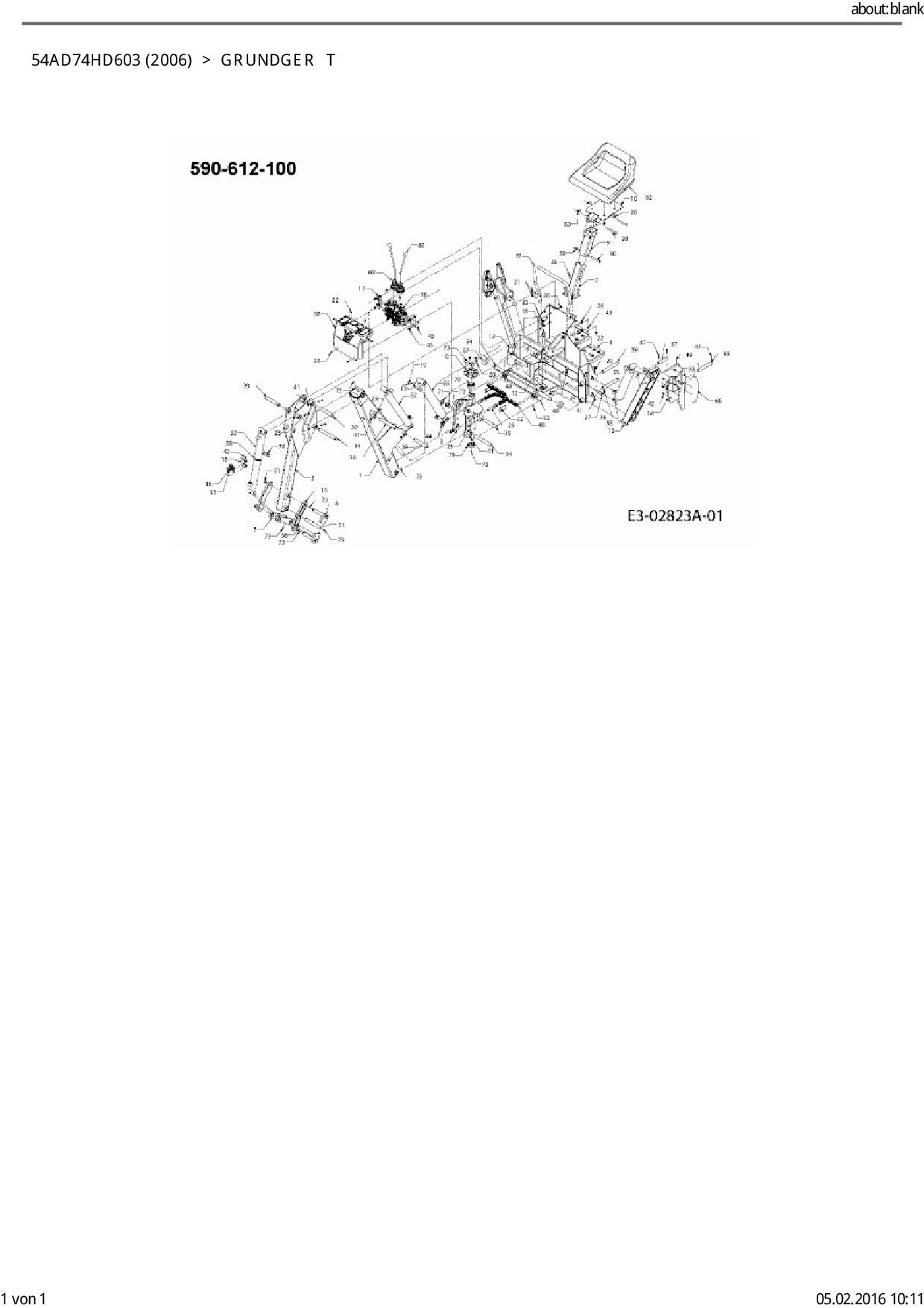 Zeichnung für Cub Cadet Kompakttraktor HDS 6284 mit der Geräte-Artikelnr. 54AD74HD603 ab Baujahr 2006: