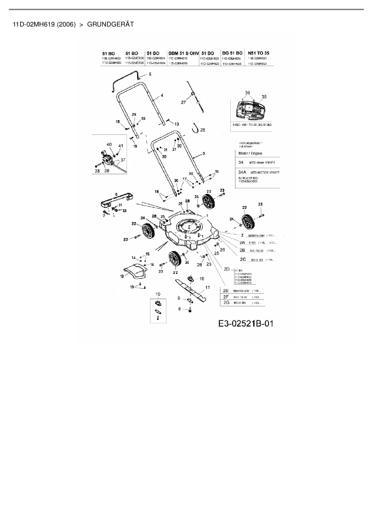 Zeichnung für Budget Motormäher BBM 51 SOHV mit der Geräte-Artikelnr. 11D-02MH619 ab Baujahr 2006: