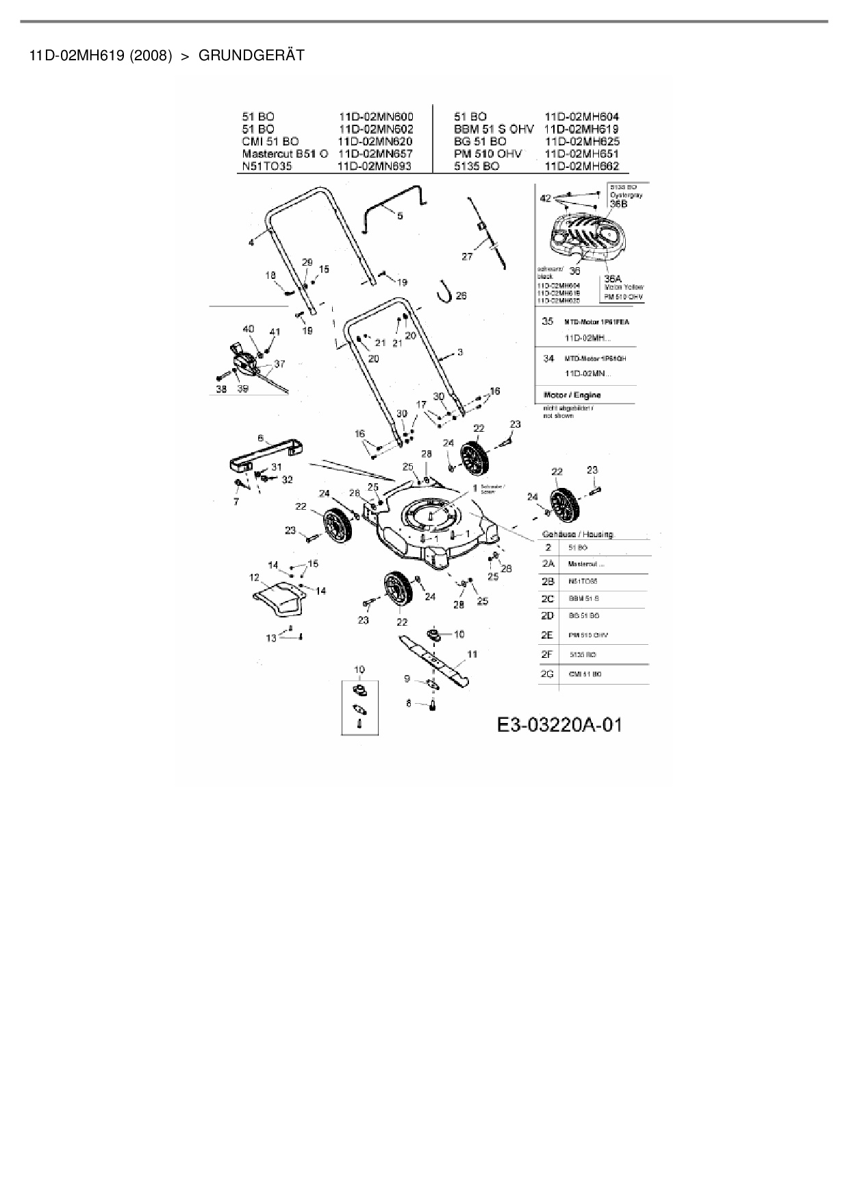 Ersatzteile für Motormäher Budget BBM 51 SOHV aus der Zeichnung Grundgerät: