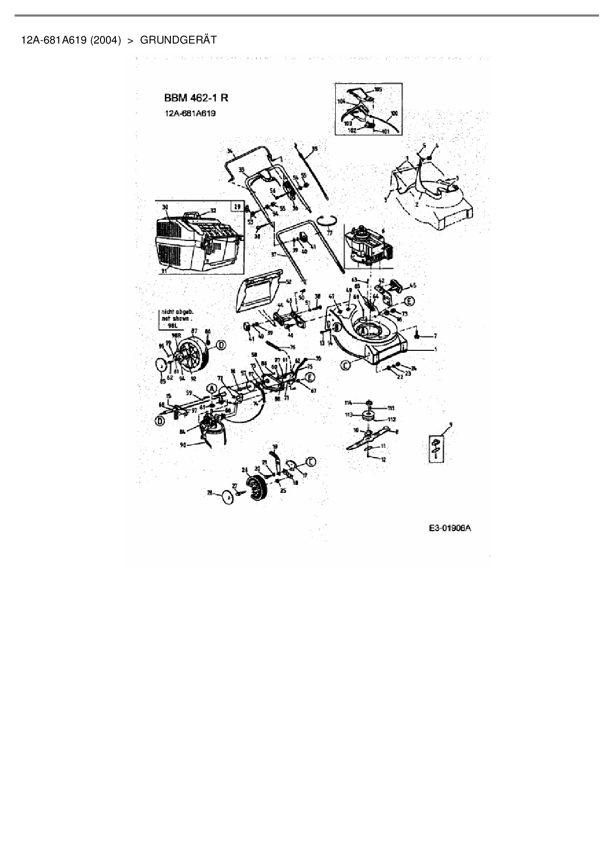 Zeichnung für Budget Motormäher mit Antrieb BBM 462-1 R mit der Geräte-Artikelnr. 12A-681A619 ab Baujahr 2004: