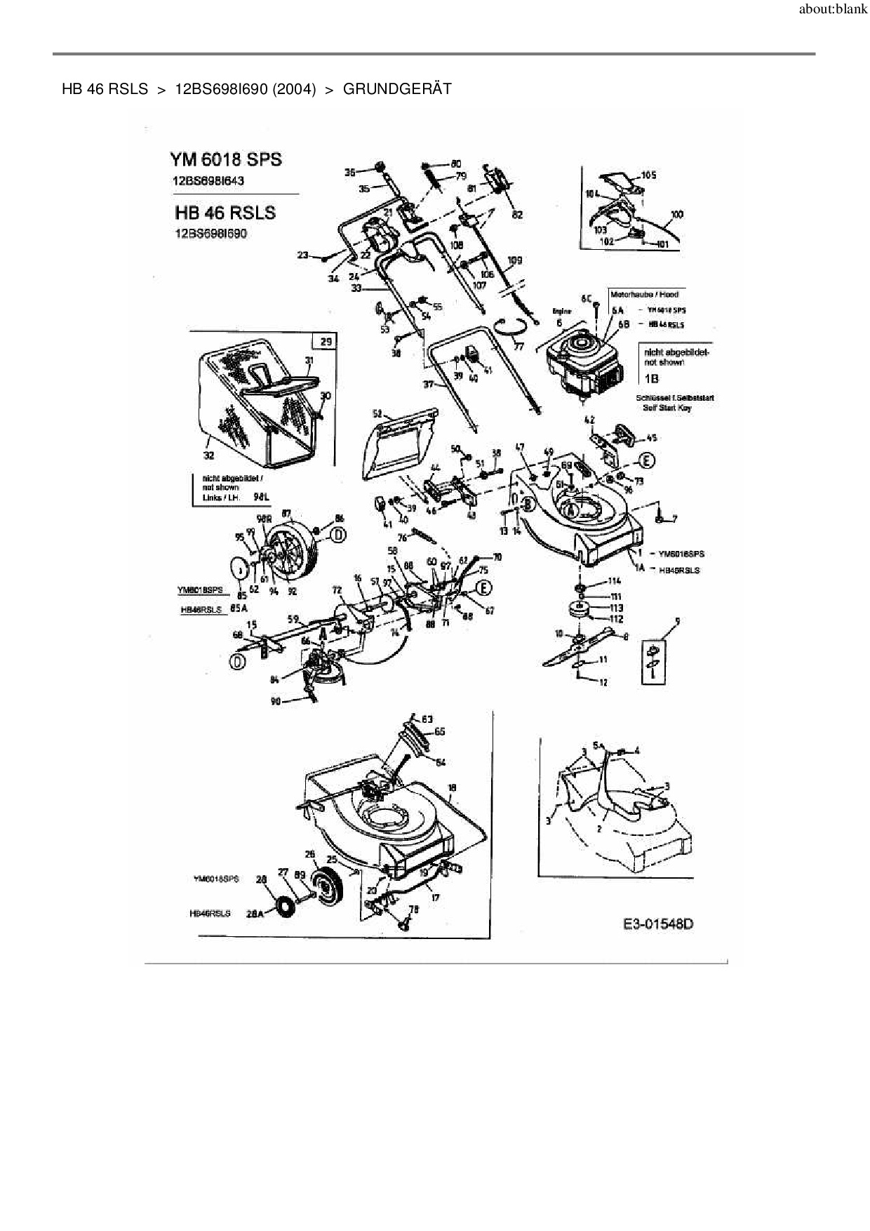 Zeichnung für Gutbrod Motormäher mit Antrieb HB 46 RSLS mit der Geräte-Artikelnr. 12BS698I690 ab Baujahr 2004: