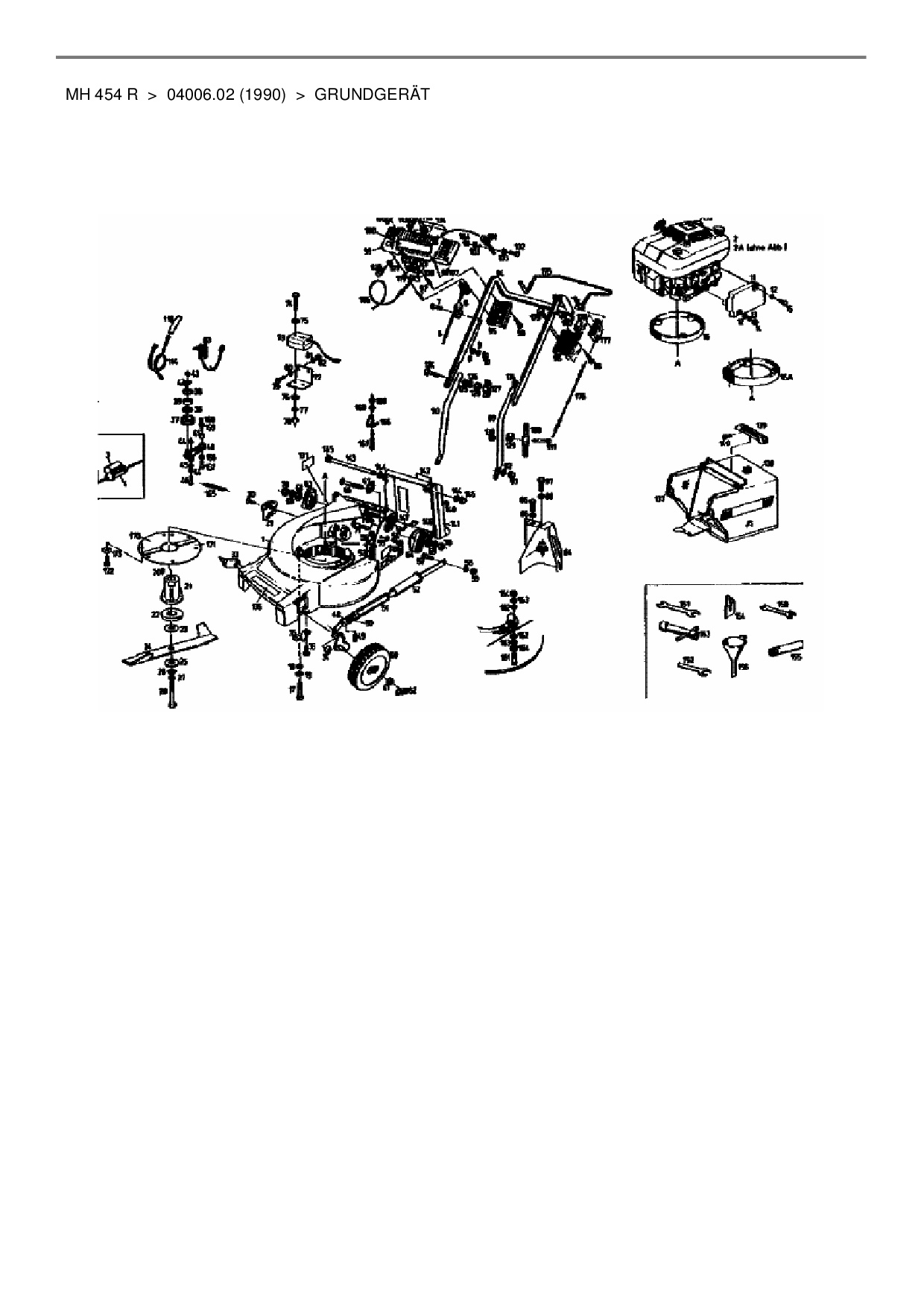 Zeichnung für Gutbrod Motormäher mit Antrieb MH 454 R mit der Geräte-Artikelnr. 4006.02 ab Baujahr 1990: