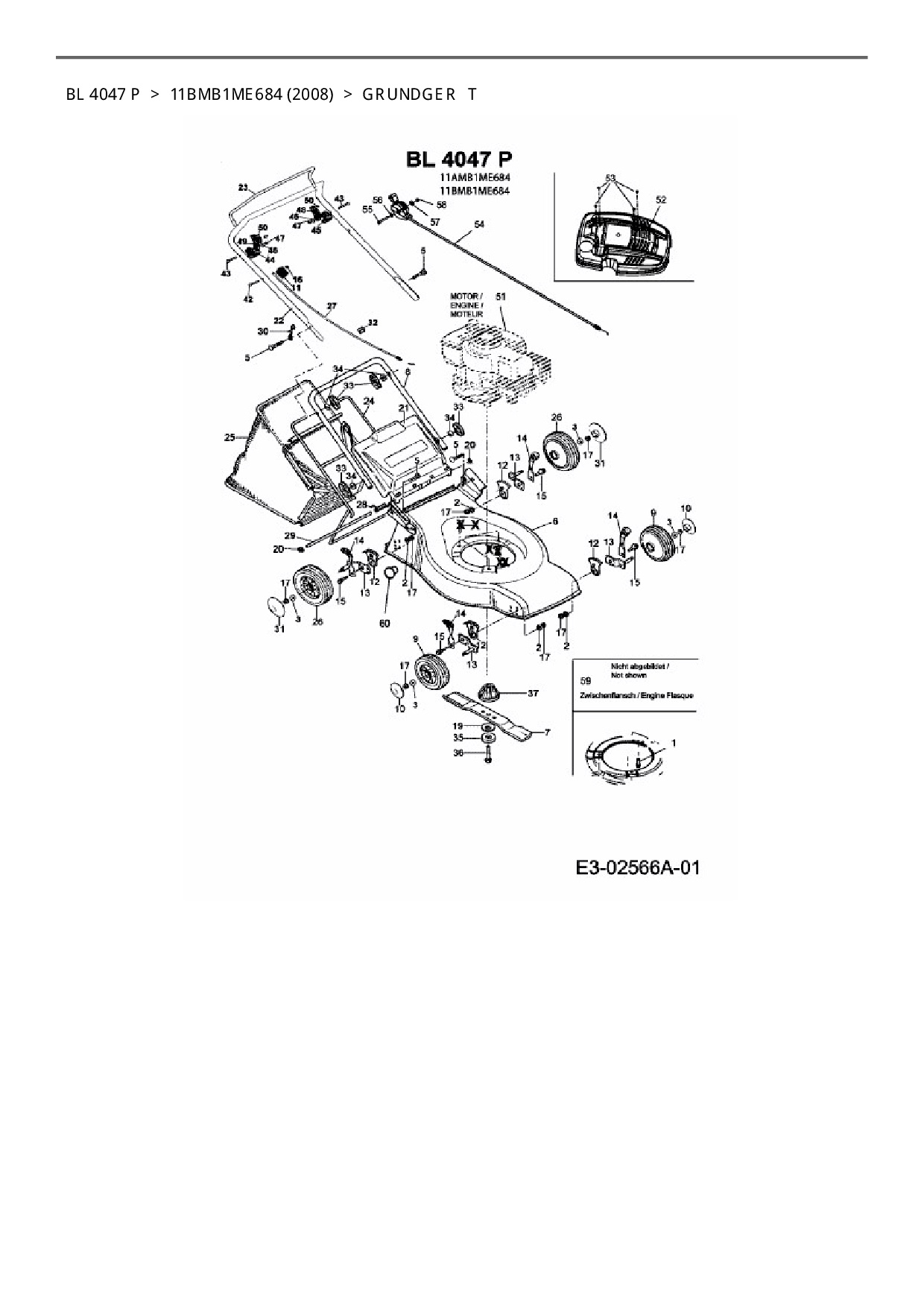 Zeichnung für Bolens Motormäher BL 4047 P mit der Geräte-Artikelnr. 11BMB1ME684 ab Baujahr 2008: