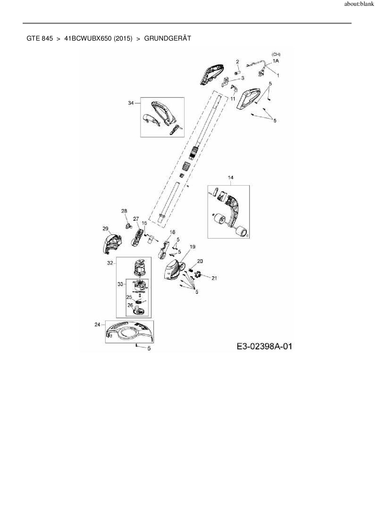 Ersatzteile für Elektrotrimmer Wolf-Garten GTE 845 aus der Zeichnung Grundgerät: