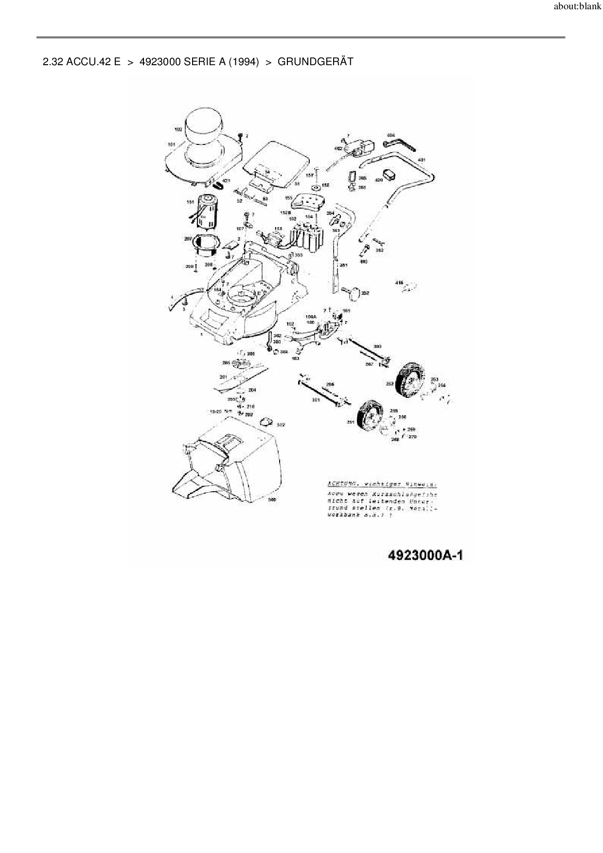 Zeichnung für Wolf-Garten Akkumäher 2.32 Accu.42 E mit der Geräte-Artikelnr. 4923000 Serie A ab Baujahr 1994: