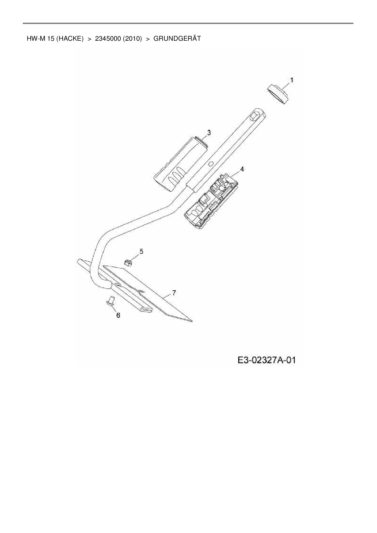 Download Ersatzteil-Zeichnung Wolf-Garten HW-M 15 (Hacke) Zeichnung Grundgerät (PDF-Format)