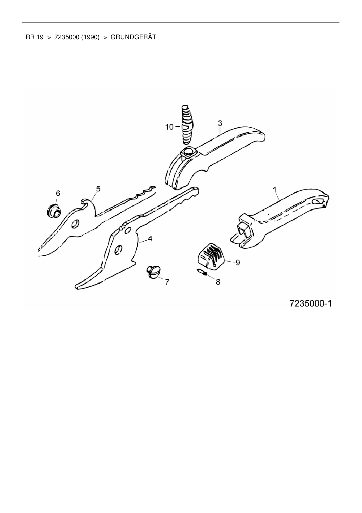 Ersatzteile für Gartenschere Wolf-Garten RR 19 aus der Zeichnung Grundgerät: