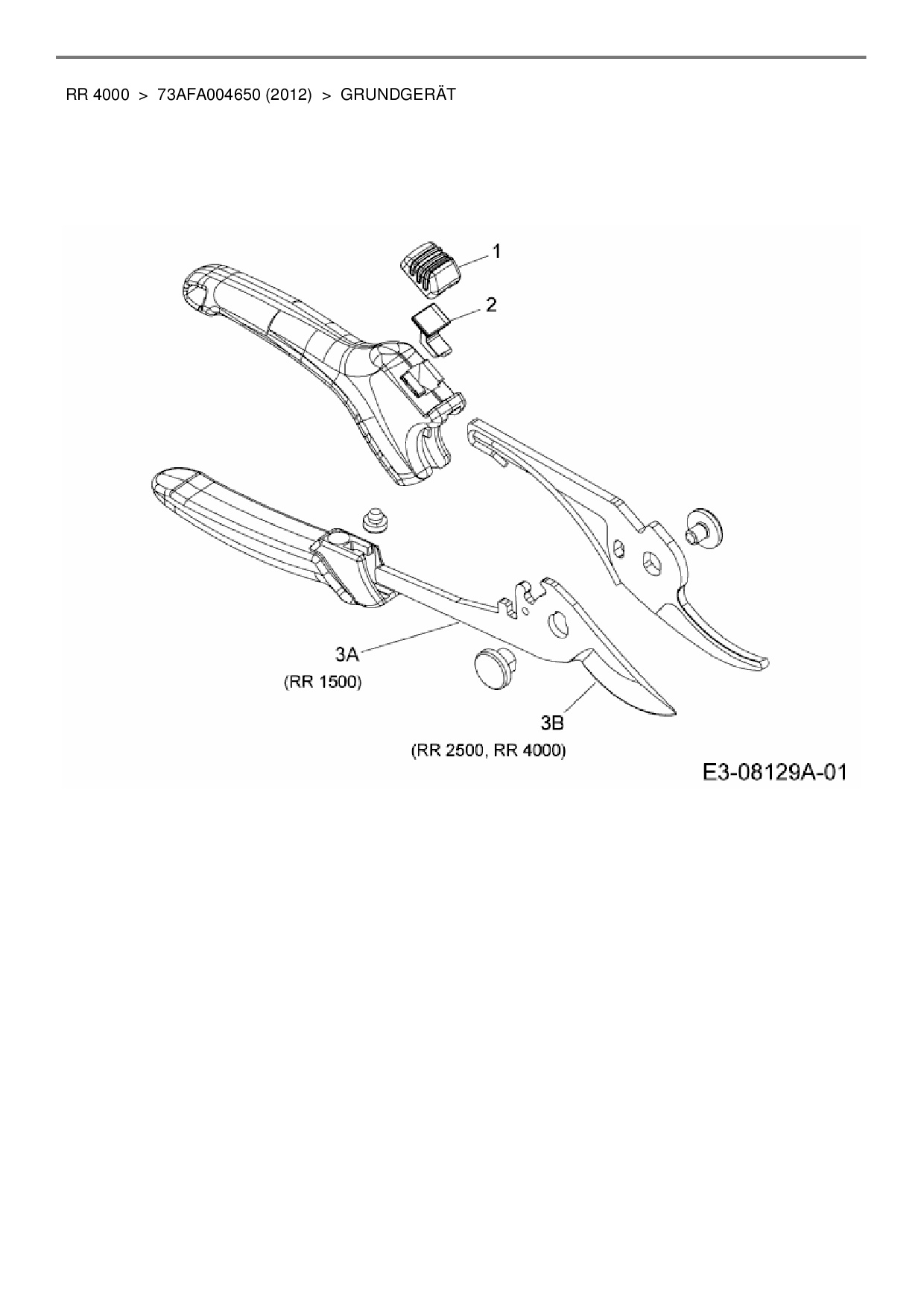 Zeichnung für Wolf-Garten Gartenschere RR 4000 mit der Geräte-Artikelnr. 73AFA004650 ab Baujahr 2012: